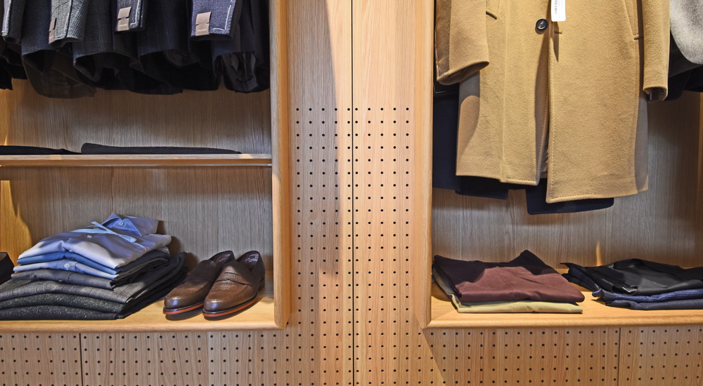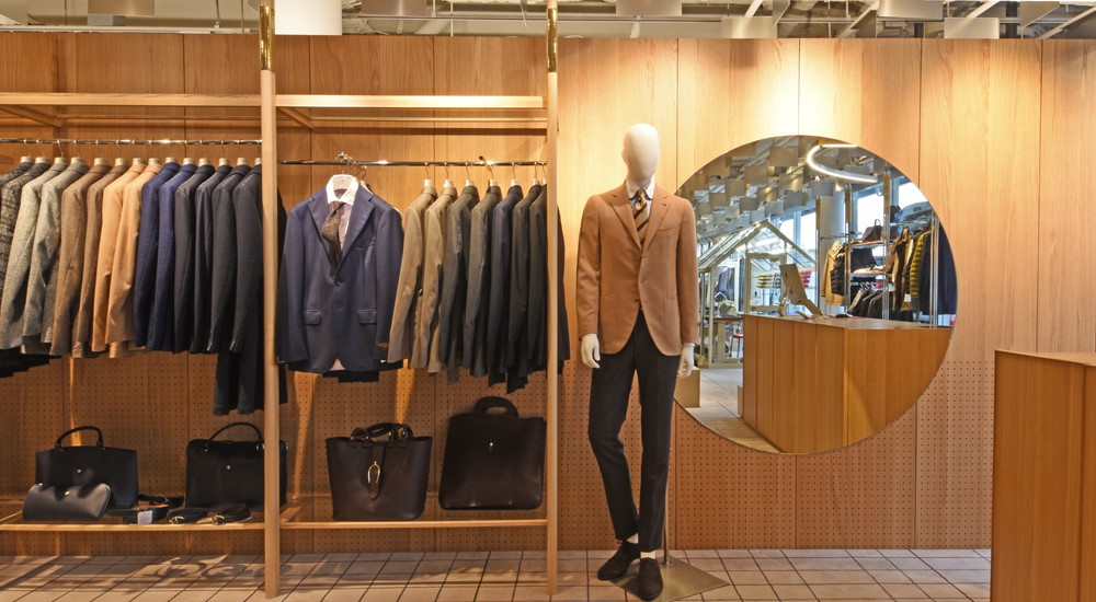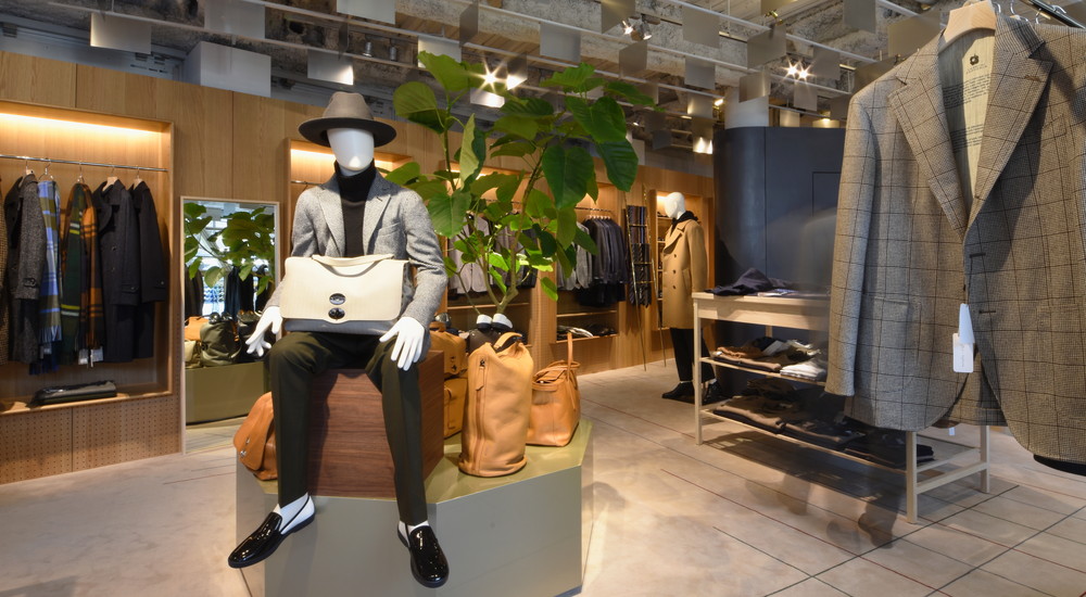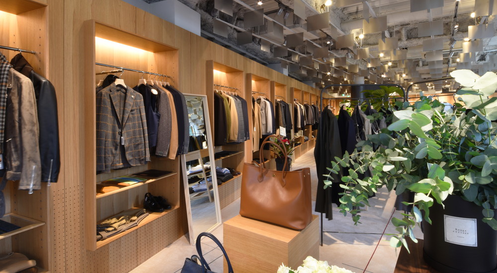 レジ前はHERNOを中心にモダンな都会派アウターが