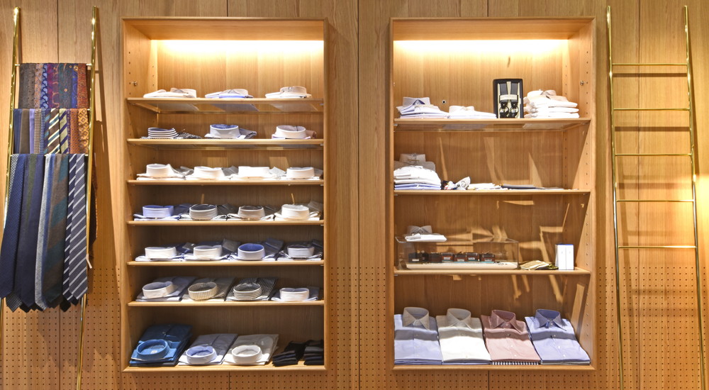 この梯子みたいなネクタイ什器が複数あります