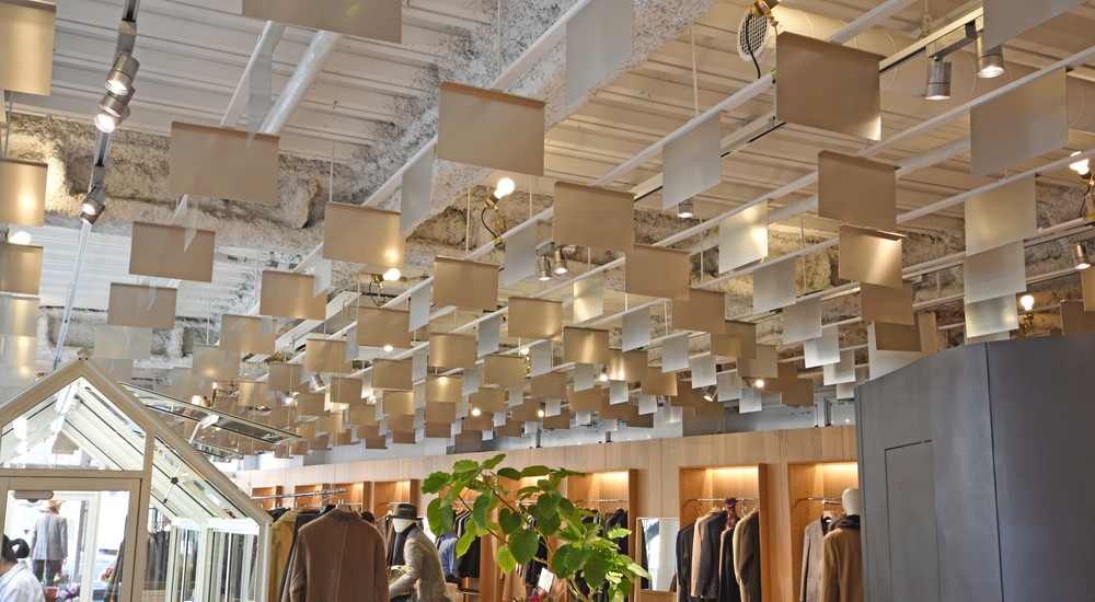 gujiのアイコンとなっているコーンを使用したサインも引き続き採用、gujiやbalcone、salottoとレーベルに分けてレイアウトしているゾーンの入り口に鎮座しています。