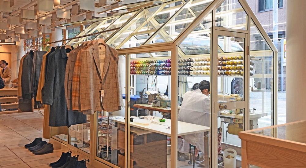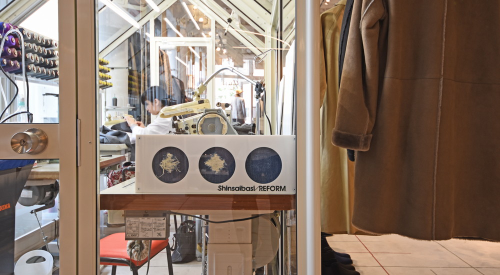 そうなんです、今回オープンするにあたっての目玉の一つ、心斎橋リフォームさんの工房を店内に構えて頂きました。