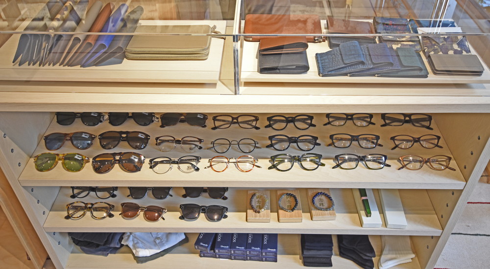 いつもレイアウトに困るメガネやグッズはレジ横に