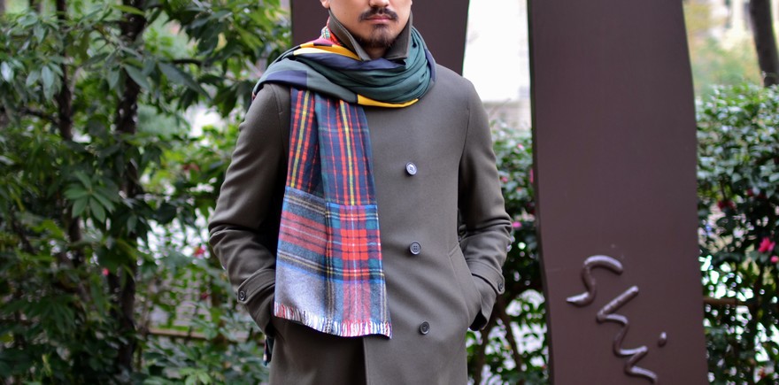 パッと見た目は派手ですが、巻くとすごく良い雰囲気になるPierre-Louis Masciaのストールはユニセックスで展開しているアイテムでして、シーズン毎に一新されるアートコラージュをプリントしたモデルです。