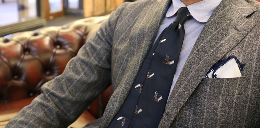 1914年、ナポリにて創業したタイを中心としたブランド"E.Marinella(E.マリネッラ)"。時代性とオリジナルのファッション性を反映させたモダンラインの"DARKNOT(ダークノット)"はカジュアルからビジネスまで幅広く対応する大注目ブランドです。こちらのモチーフは、動きのあるフリンジやスキーヤーがコミカルでファッションを楽しんでいる感じが十二分に醸し出され、女性目線での「かわいい!」を獲得できるのも大きなポイントです。