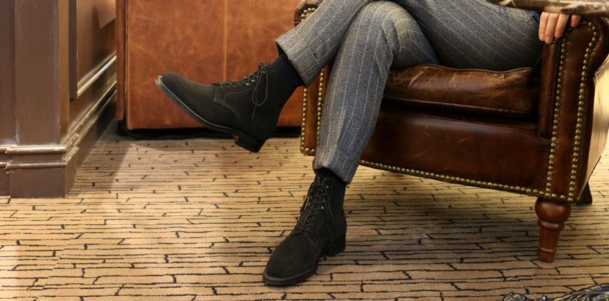 冬といえば男性もブーツが恋しくなる季節です。スエードのウォーム感とレースアップのエレガントさがマッチ。ダイナイトソールはクッション性に富んでいますので、デート中に足が痛くなり機嫌が悪くなって二人の空気も・・・なんて心配は無用です。こっそり、靴のサイズを調べてくれてたりするとサプライズ度も上がる事間違いありません。