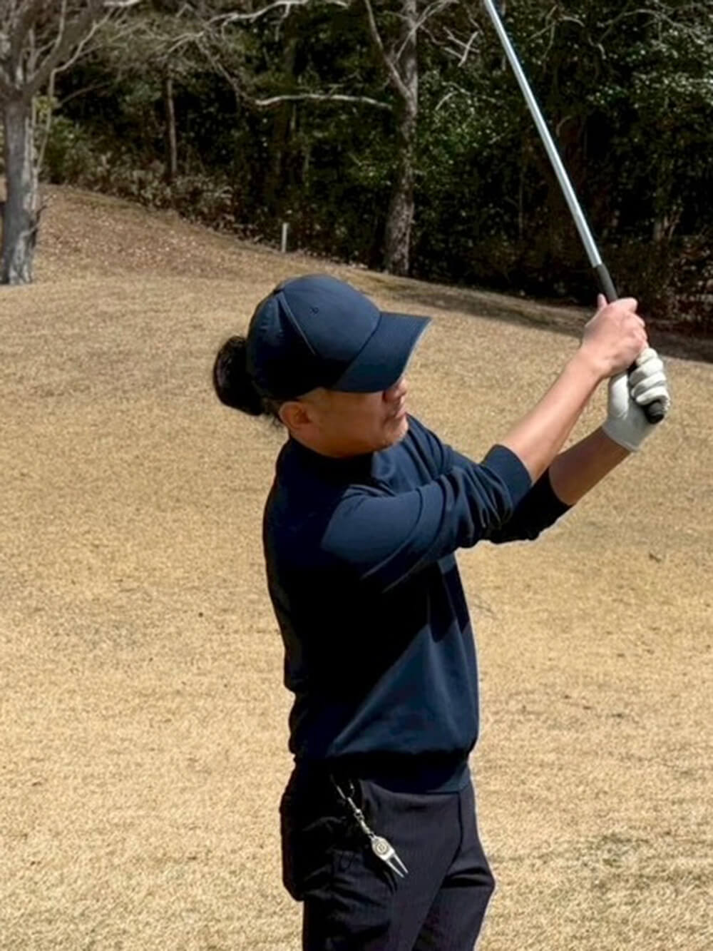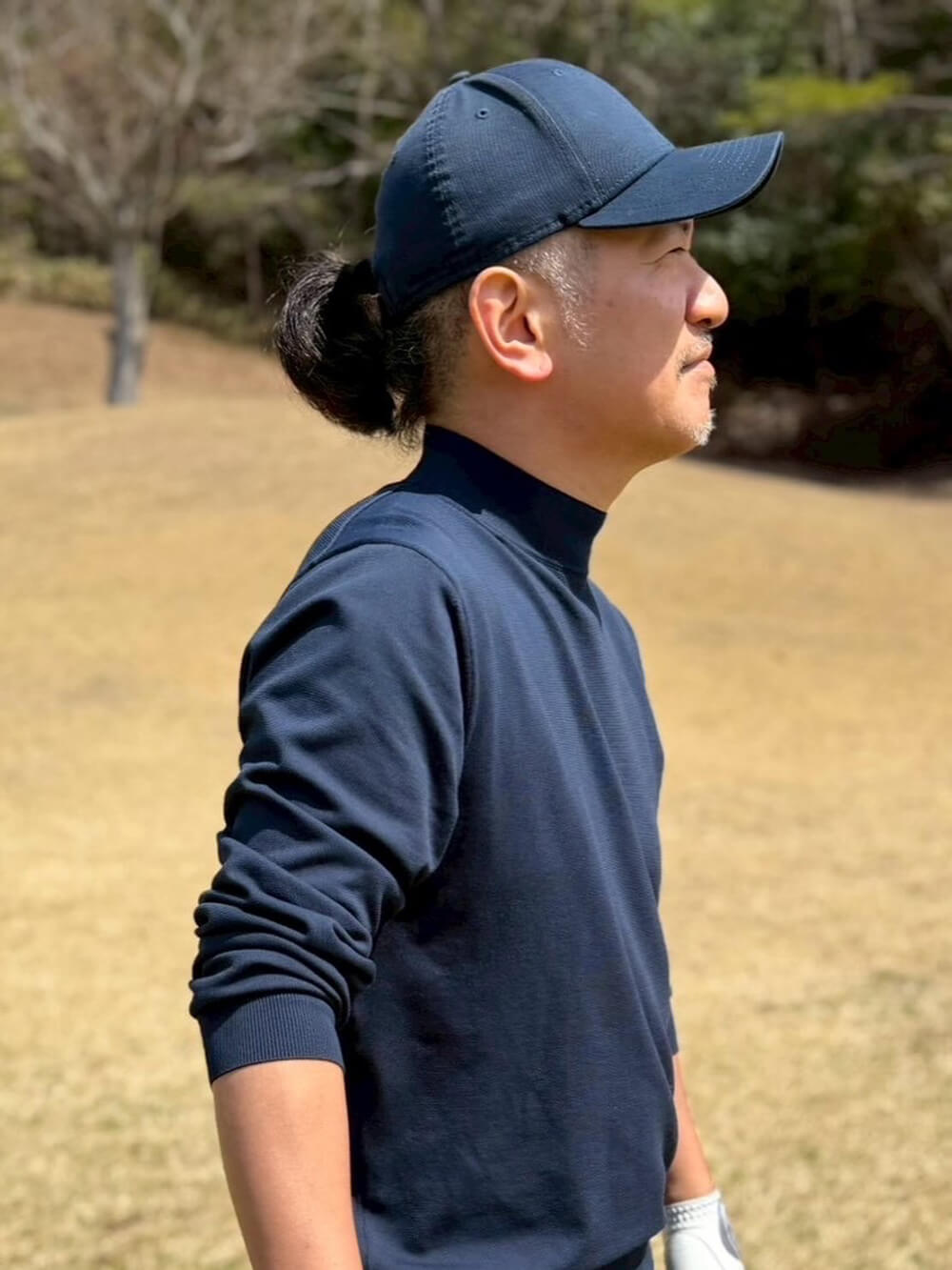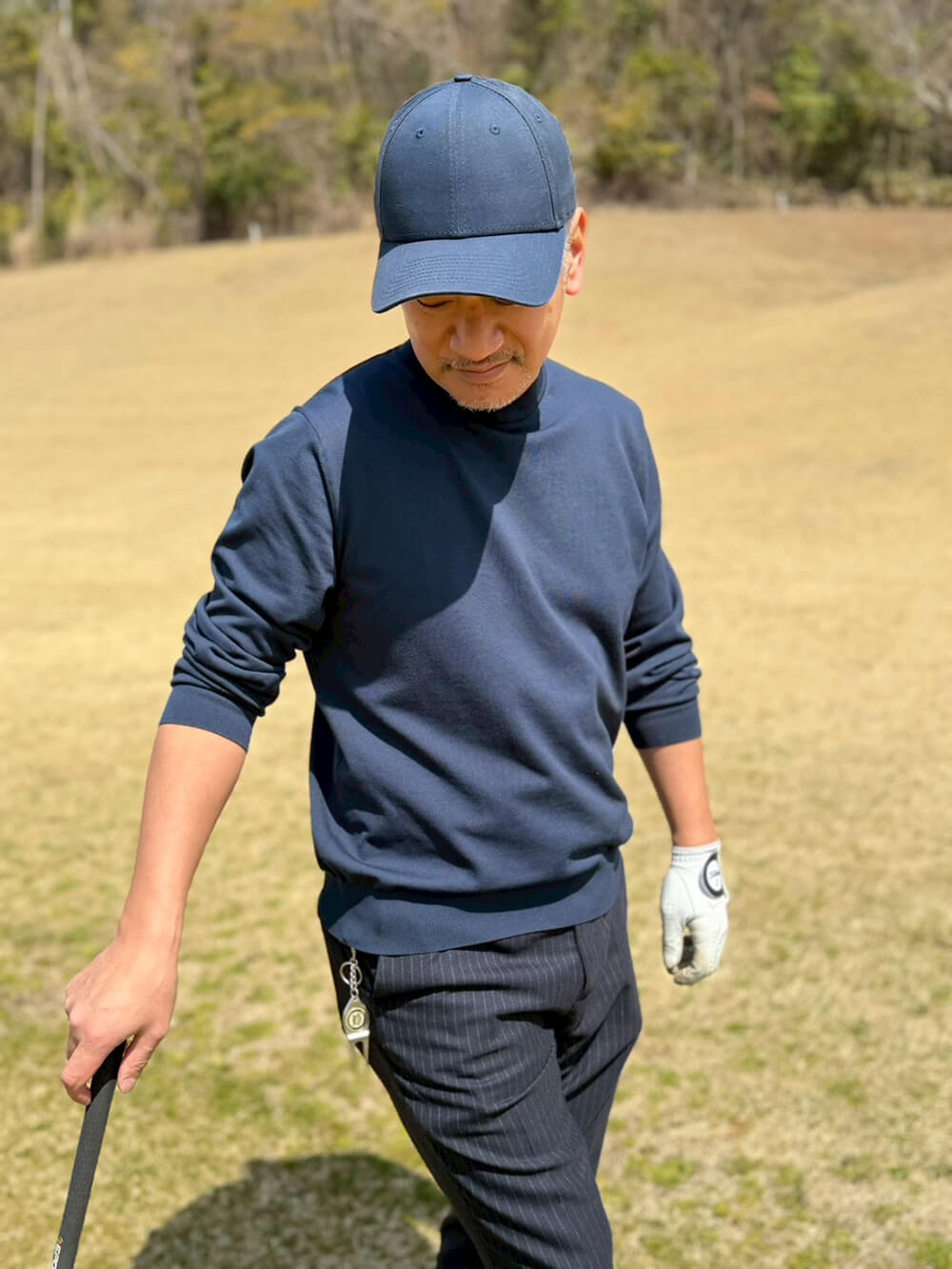 オールネイビーの春ゴルフスタイルです。