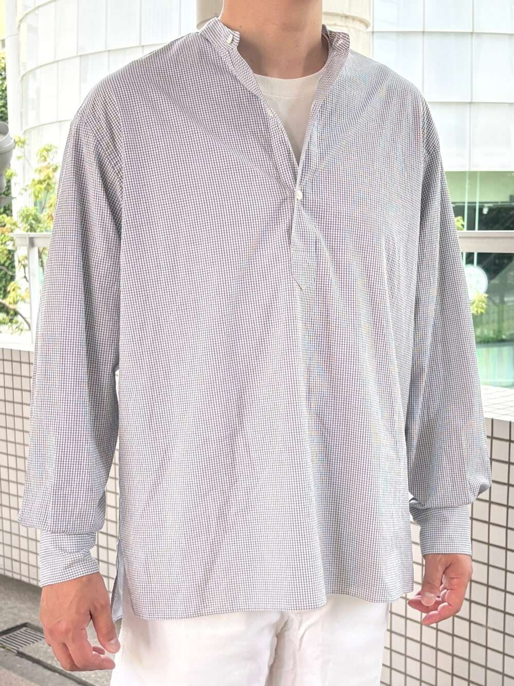 YLEVE(イレーヴ)コットンマイクロチェックバンドカラープルオーバーシャツ 170-5150083
