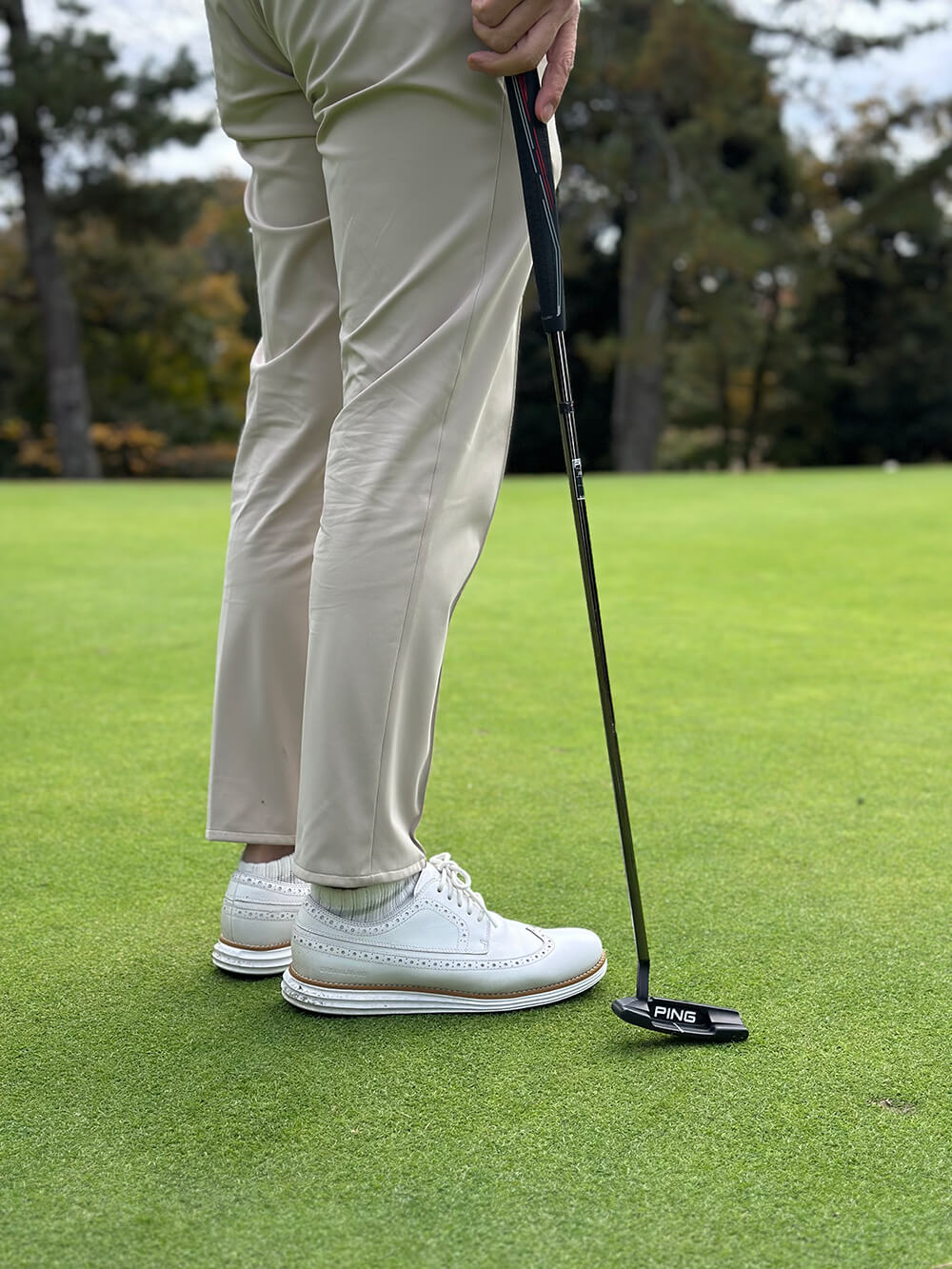 ホワイトxベージュ ラグジュアリーなカラーリングのゴルフスタイル。