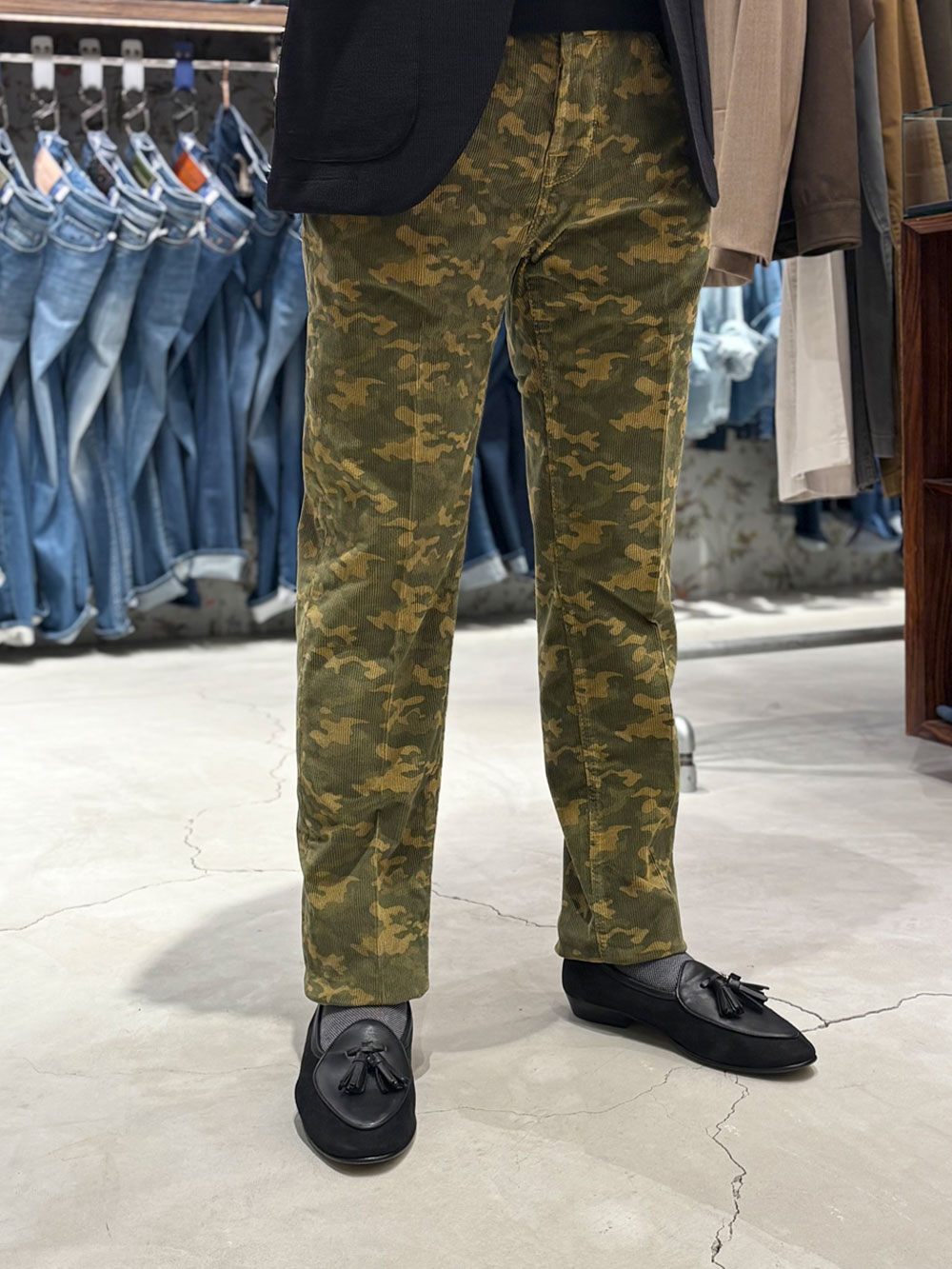 JACOB COHEN(ヤコブコーエン)SCOTTスコット コットンレーヨンコーデュロイカモフラージュキャロットフィットクロップドパンツ