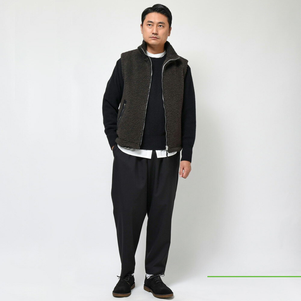 実際ここまで素材にこだわったベストは他にありませんし、それがデイリーに着れるデザインになっているというのも面白い所。オフスタイルのワードローブとして迎え入れてみてはいかがでしょう。