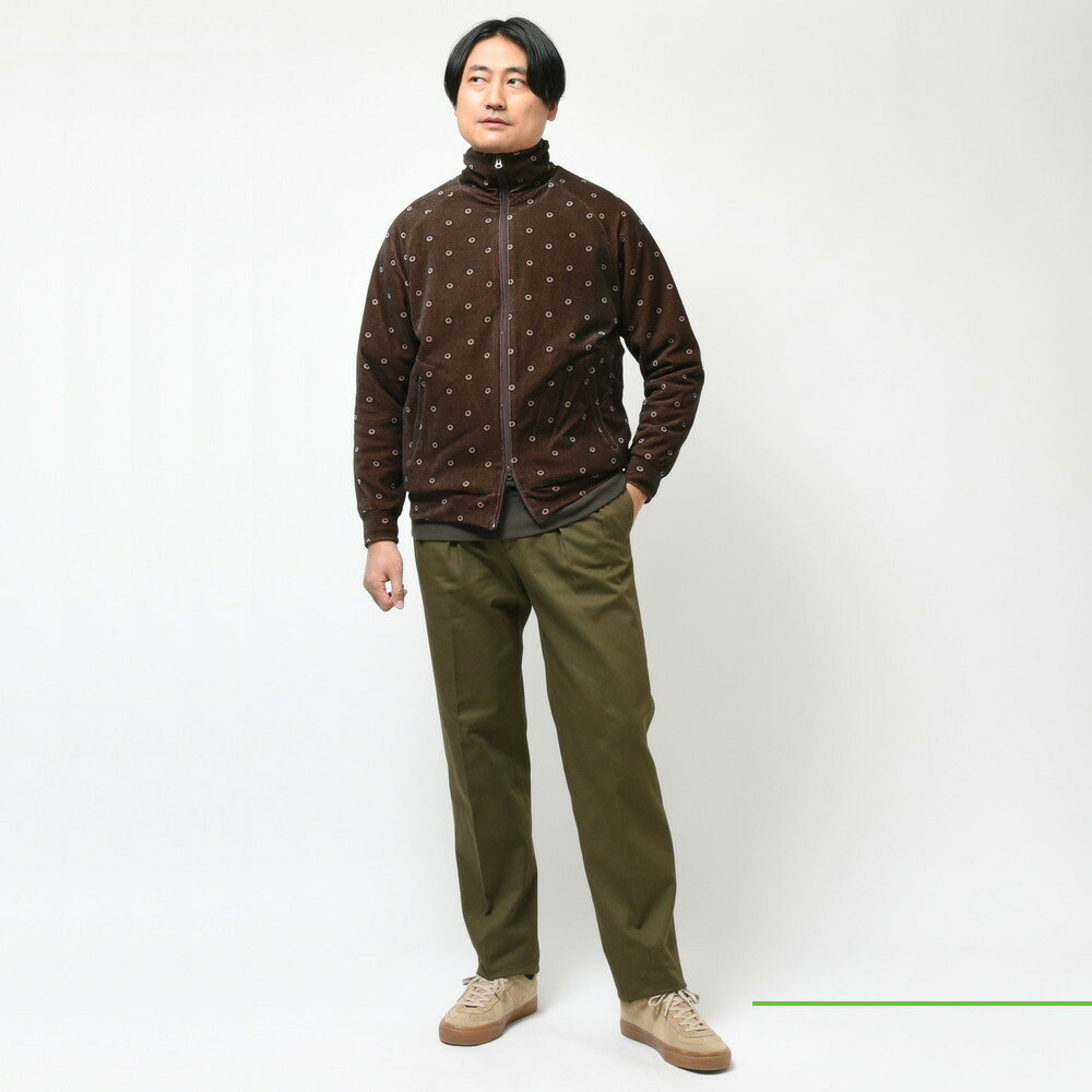 MPX mando(エムピーエックス マンド)ではスポーティなアイテムをメインに展開されていますが、そのどれもが他のブランドにはないファッショナブルな雰囲気を有しています。もちろんこちらもその一つでして、ベロア生地にドット柄をプリントした総柄仕様のトラックジャケット。