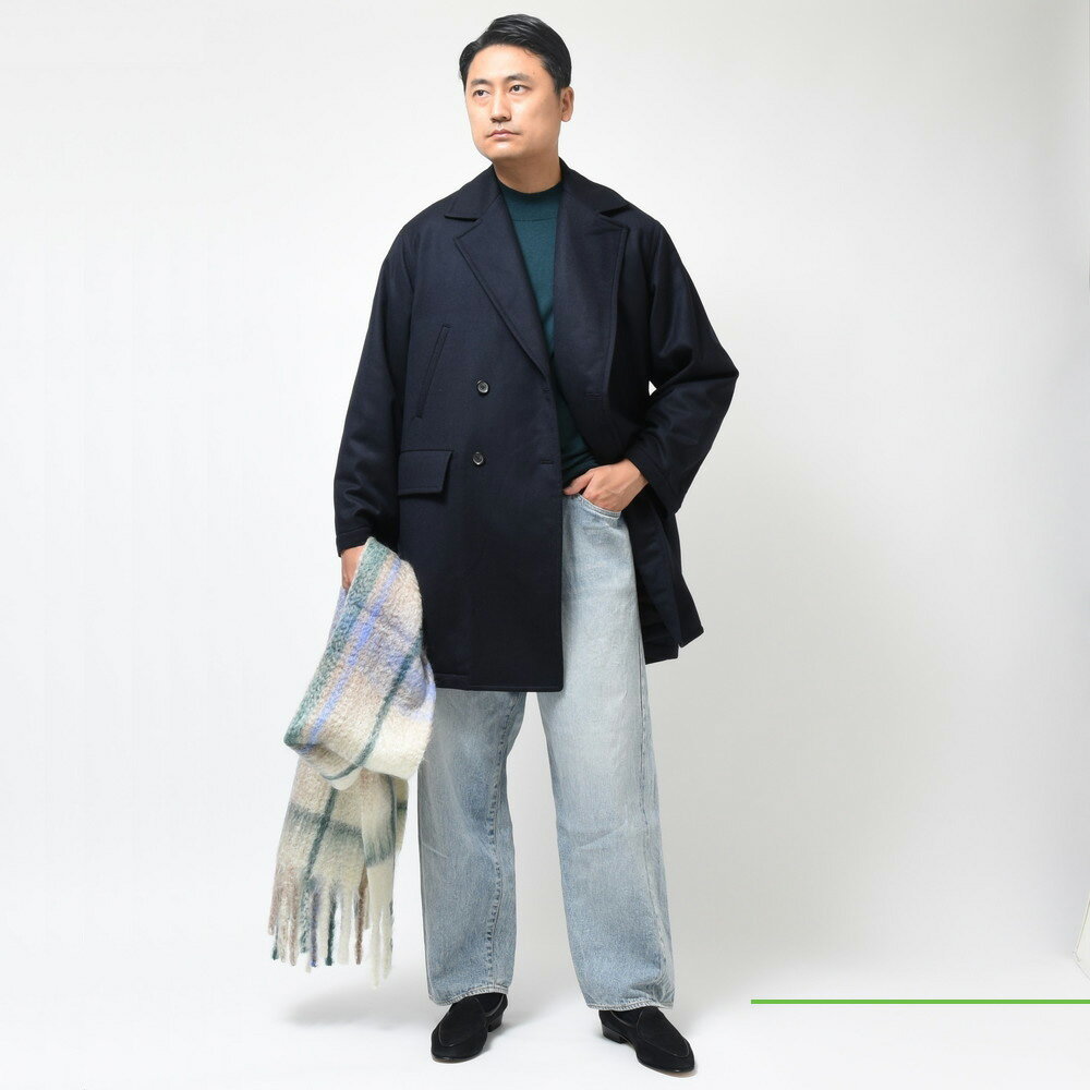 所謂Pコート的な感覚でお使い頂けるアウターです。中綿が入る事で適度にパツッとしているので綺麗に形が出るのも良いですね。着ていてすんなり決まってくれる存在です。