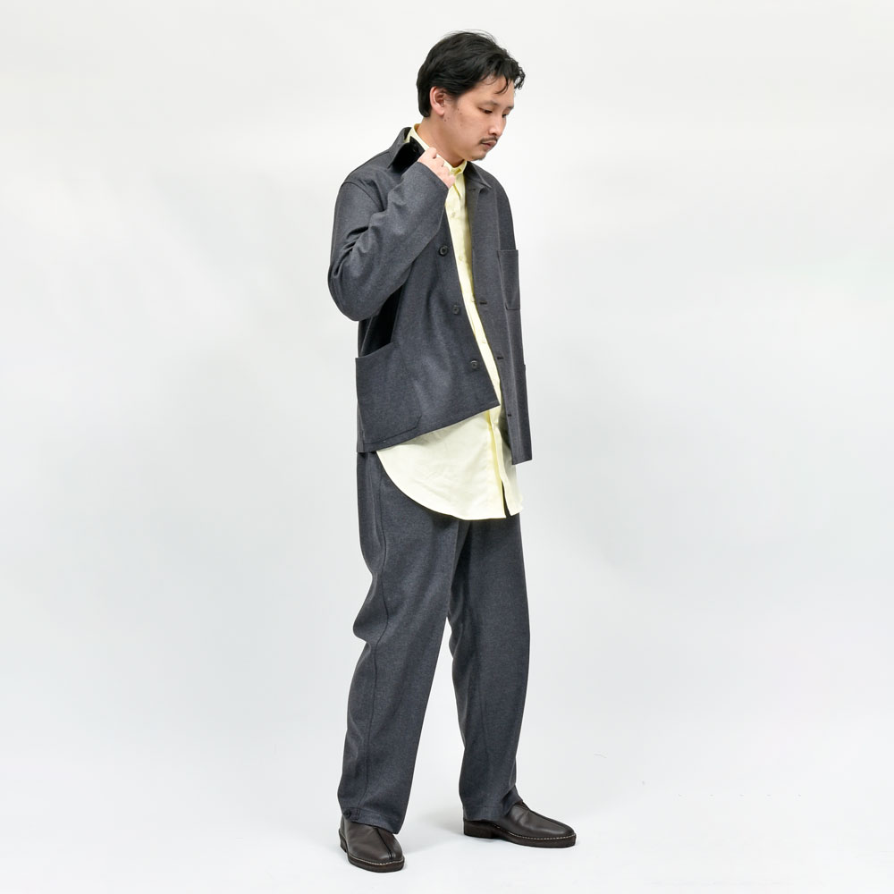 非常にしなやかなウールフランネルはSUPER140'sのウールを採用、そうすることによってカバーオールも上品さ溢れる顔立ちに進化しています。羽織ではありますが、生地の厚みから考えるとシャツアウターぐらいの感覚でお使い頂けるものになっています。