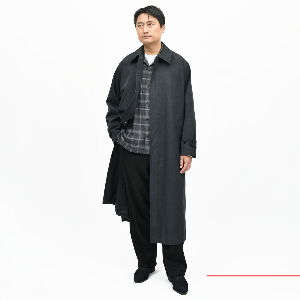 YLEVE(イレーヴ)のウールギャバジンコート、シンプルなデザインでありながら存在感のある見え方になっており、嫌味のない現代的な雰囲気を纏った一着と言えるのではないでしょうか。