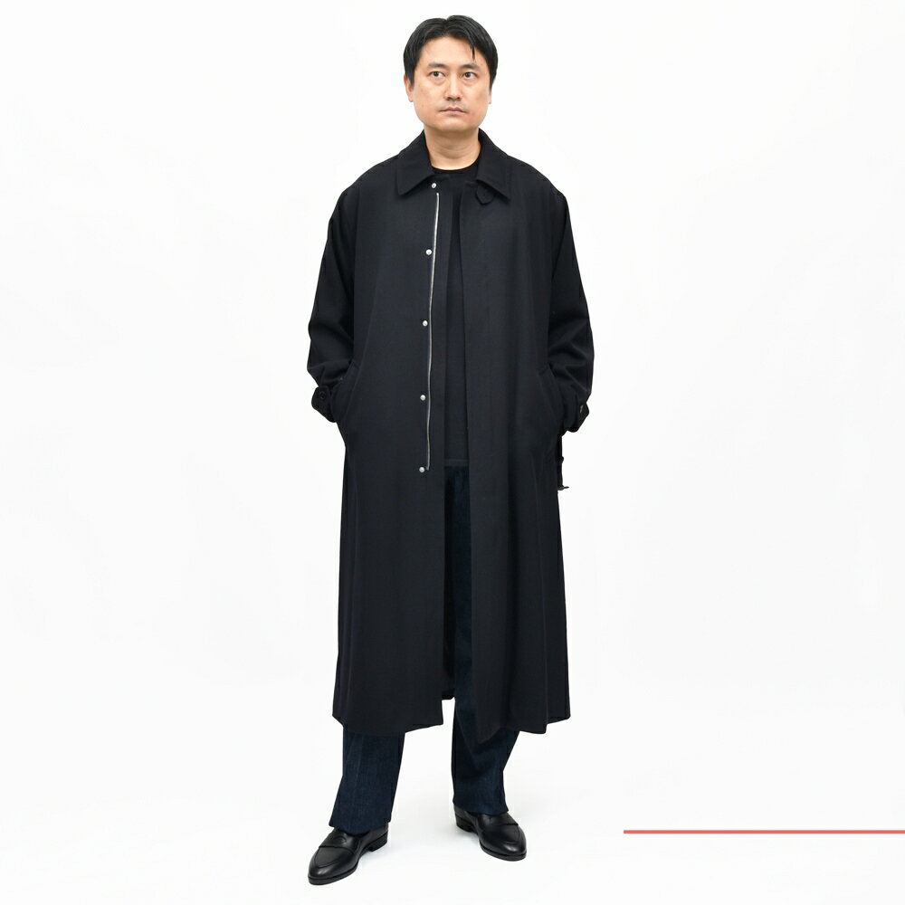 生地をたっぷりと用いたロングレングスのコートなので、どんな生地を用いるかでかなり印象が変わります。