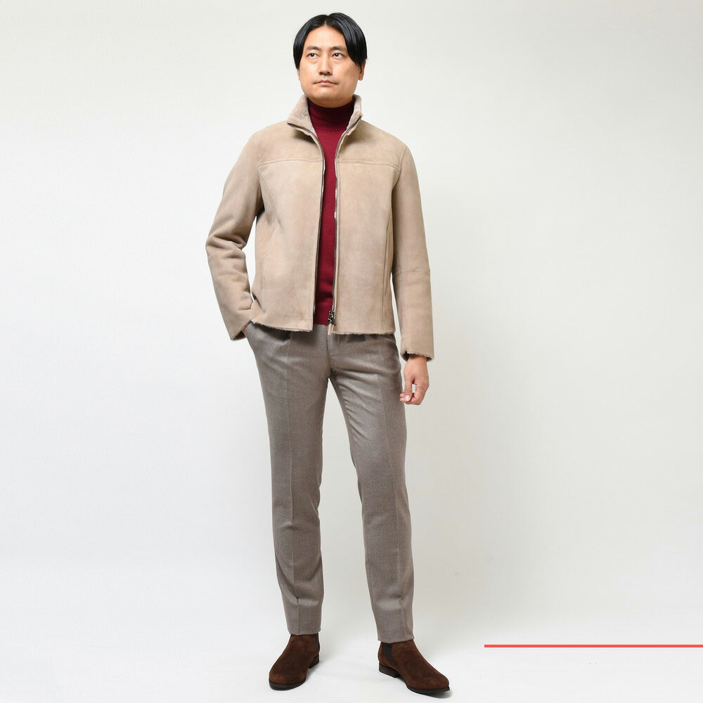 ALTACRUNA(アルタクルーナ)が採用するムートンの中でもトップグレードの、ナチュラルになめされたベビーラムムートンを用いたライトウェイトムートンブルゾン、正にエレガンスの極みともいえる仕上がりになっています。
