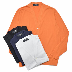 AMBELL(アンベル)のコットンを91%、シルクを9%の割合で仕上げているVネックカーディガン、ドライタッチの薄手のニットになっているので春夏シーズンの軽い羽織りとして丁度いい存在です。