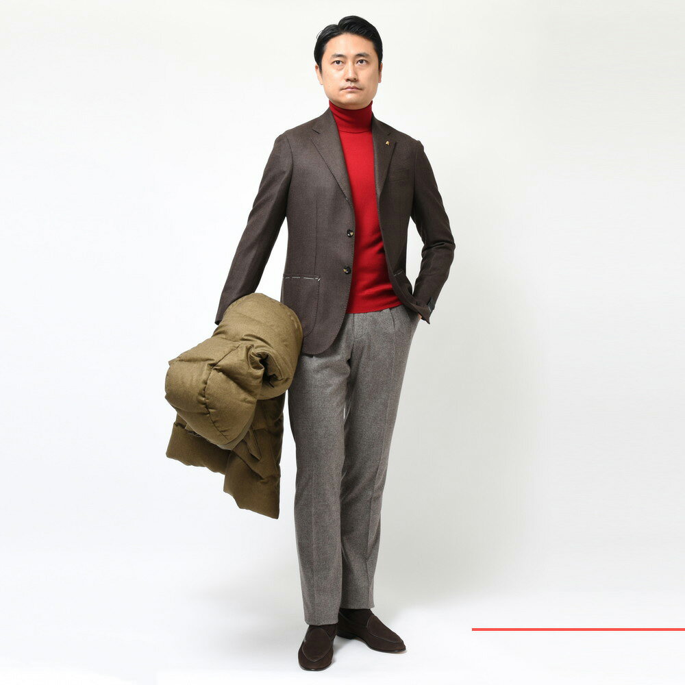 これぞ“LoroPiana”というクオリティですね、ツィードタッチの組織でも非常に艶やかで色気のある仕上がりになりますので、LATORRE(ラトーレ)×guji(グジ)で目指した新しいシルエットにピッタリの生地かと思います。