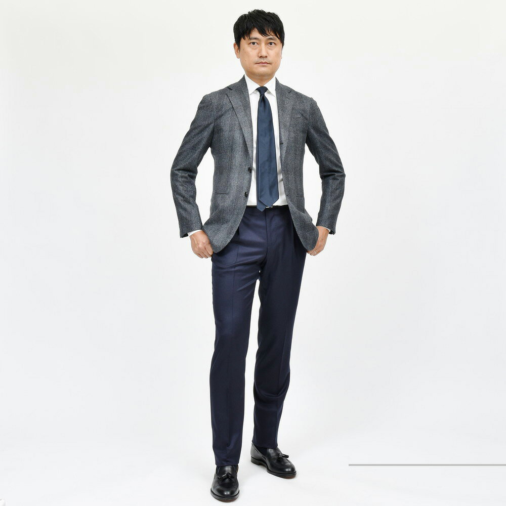 チョイスしたグレンチェックはコントラストが効きすぎていないスモーキーなトーンが気に入りました。