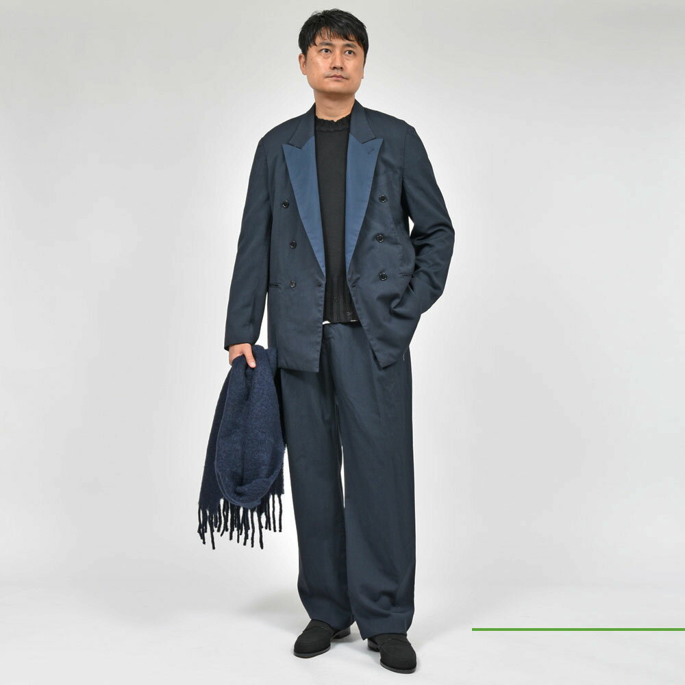 セットアップで着てもタキシードっぽくならず、着流しているような遊び心を感じさせる仕上がりになっていまして、これはmandoならではの空気感だな・・・と。