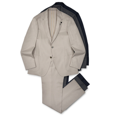 昨シーズンから従来の半毛芯ではなくより軽さを意識した接着芯仕立てに変更し、着心地の良さをアップデート。一般的には接着芯よりも手間やコストが多くかかる毛芯を用いた仕立てが良しとされていますが、何を目的にするかで仕立てはコントロールされる時代になりました。