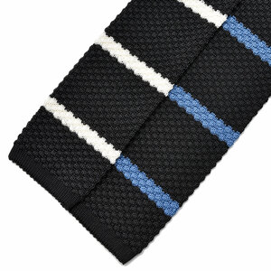 ジャガードのニットタイにストライプをセットしたこちらは大剣幅が7cmになっていましてスクエア仕様のニットタイとしてはベーシックなバランスかと思います。