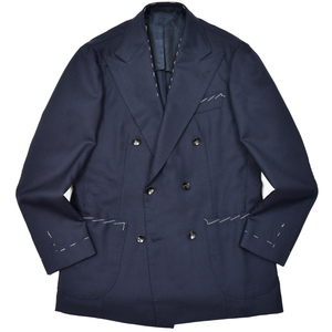 ベーシックなネイビー無地のタブルジャケットなんですが、ナポリ仕立てならではの特徴を随所に感じさせるため、良い意味でわかりやすく上質なものだということが伝わります。