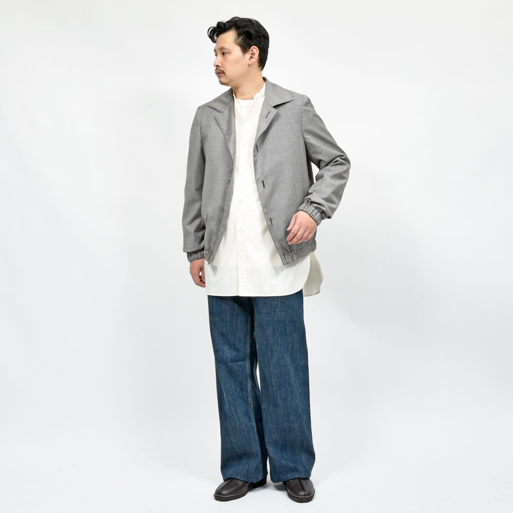 しなやかなウール生地に細かなチェック、何処かクラシカルな様相を感じさせつつも実際に着用すると非常にモダンなバランスで着用可能なブルゾン。