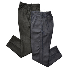 ストレートのストンと落ちる形は今の流れを感じさせつつも、大きく見れば普遍的にも捉えることができます。使っている素材やディティールはカジュアルですが、大人が無理なくさらりと穿くことができる一本。非常に汎用性が高いパンツだと思います。