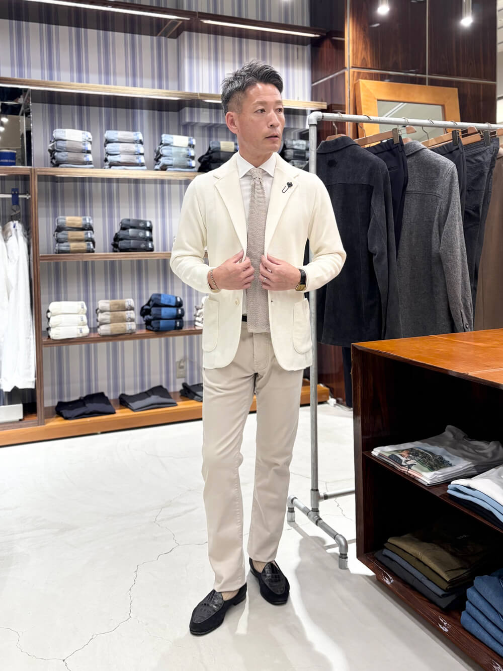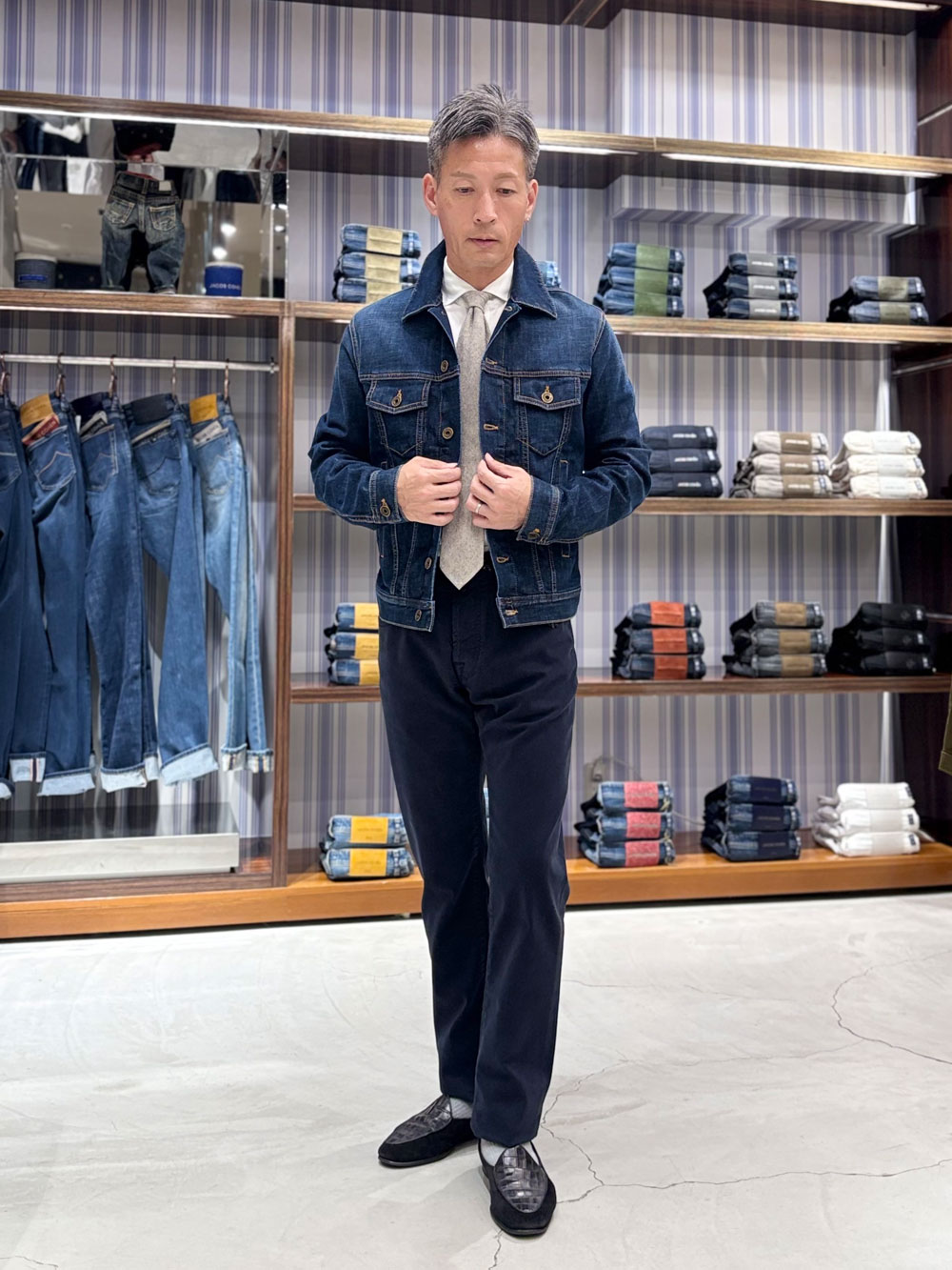 スタイリングの幅も広く、ジャケットからカジュアルなトップスまで幅広く合わせられる万能選手。一本あるとシーズンを問わず活躍してくれる頼りがいのあるアイテムかと思います。