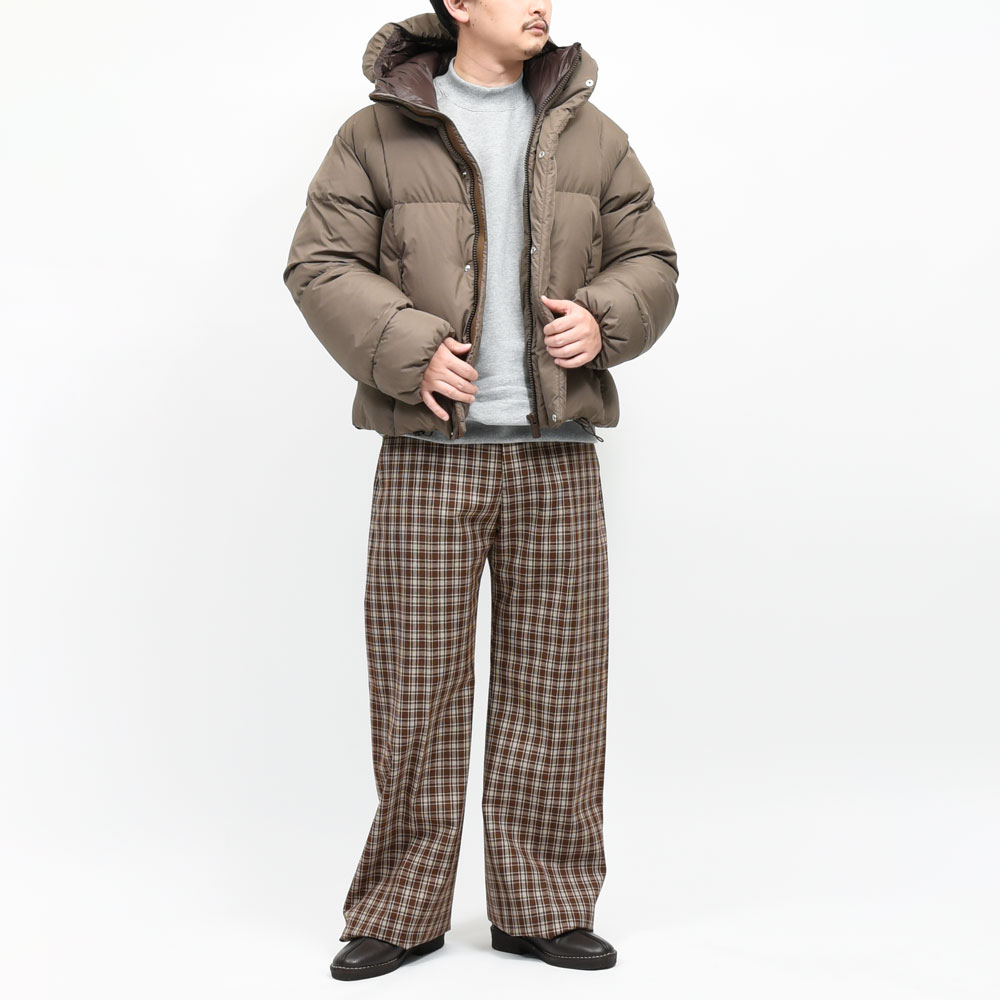 『デザインとボリューム、バランスの取り方が秀逸です。』 じわじわと日本でもその知名度を上げているBacon(ベーコン)、balconeでも引き続きプッシュしております。大きめのブロックキルトの配置が特徴的なM OAK’S ポリエステルフーデッドダウンジャケット。スタイルはストリートですが、生地や縫製のクオリティは一級品ということで大人の男性の着用にも耐えうるクオリティが備えられています。 ボリュームはあるんですが決して「着られている感」が出ないのが素晴らしいところ。身幅しっかりとありますが、着丈はコンパクトになっているので全体のバランスは綺麗に纏まっています。 (画像のスタッフは172cm、61kgでMサイズを着用しています。) STAFF Voice 年々、季節の間で体調を崩すようになってきました。若い頃の感覚のまま薄着で出かけるというのはやめた方が良い、ということを身に沁みて実感しております、、、。 暖冬傾向ではありますが、結局のところダウンジャケットは必要ですよね、、、となってまして第一候補にこちらのM OAK’Sがあがっているわけです。ロゴは控えめ、シルエットはオーバーながらも纏まりを感じさせる秀逸さ、生地のタッチも上質なので持っていると確実に「着る」アイテムなんですよね。 スタッフ 泉 結構モコモコとした特徴的なシルエットなんですが、それが思った以上に着膨れ感を感じないといいますか、モダンに整えられているなという印象。昨今のオーバーサイズトレンドで目が慣れたということもあるかもしれませんが、それでもこのシルエットの完成度は素晴らしいと思います。 ダウンなので暖かいのは間違いなし。冬でもインナーは心地良い薄手のニットなど、レイヤードアイテムを少なくするのがお好きな方には是非おすすめのモデルですね。 スタッフ 西出 コーディネートサンプル アウター:Bacon スウェット:AMBELL パンツ:MARNI 靴:LEMAIRE アウター:Bacon シャツ:HUSBANDS パンツ:BERNARD ZINS 靴:Maison Margiela コーディネートサンプルをもっと見る ※別窓でひらきます サイズ 着丈 肩幅 袖丈 胸囲 ウエスト S 64 52 61 108 108 M 65 53 63 114 114 ※単位はcmです。 詳しいサイズはコチラ 商品番号 14052400182 展開レーベル balcone モデル M OAK’S 販売価格 ¥127,000 + tax シーズン 秋 / 冬 素材 表地:ポリエステル100% 裏地:ナイロン100% 中綿:ダウン80% フェザー20% 生産国 ジョージア 付属品 無し 【修理希望のお客様へ】 修理希望のお客様はコチラのページより、 希望の修理方法を一緒にカートに入れてご注文ください。 ※修理が必要な場合のみご注文ください。ご注文が無ければ未修理にて発送致します。 ブランド Bacon/ベーコン Bacon(ベーコン)はメゾンブランドのデザインチームにいたロベルト・ロノーチェが2008年に立ち上げたアウターウェアブランドになります。 立体的で独特なパターンのアイテムは、イタリア本国での取り扱いはもとより、世界中のセレクトショップでも展開されている注目のブランドです。 このブランドの商品をもっとみる Bacon(ベーコン)M OAK’S ポリエステルフーデッドダウンジャケット BACPIGIA592 14052400182 商品番号 14052400182 139,700円(税込) [1,270ポイント進呈 ] color\size S M グレージュ △ △ ネイビー △ △ ブラック △ △:残りわずかです ×:申し訳ございません。ただいま在庫がございません。 数量 Tweet FaceBookでシェア ■店頭受取について ※モニターにより、色の見え方が実際の商品と異なることがございます。 ※商品は実在店舗での販売もしておりますのでタイムラグにより在庫数のずれが 生じる場合がございます。在庫ありの表示でも品切れの場合がございますので、 あらかじめご了承頂きますようお願いいたします。