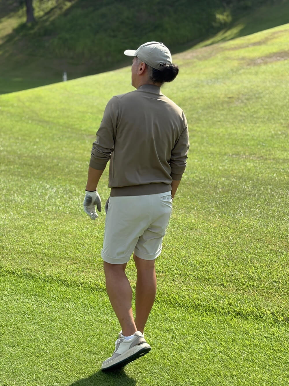 モックネック、日々のスタイルのみならずゴルフのプレー中にも着られるとあって、とても便利なアイテムです。