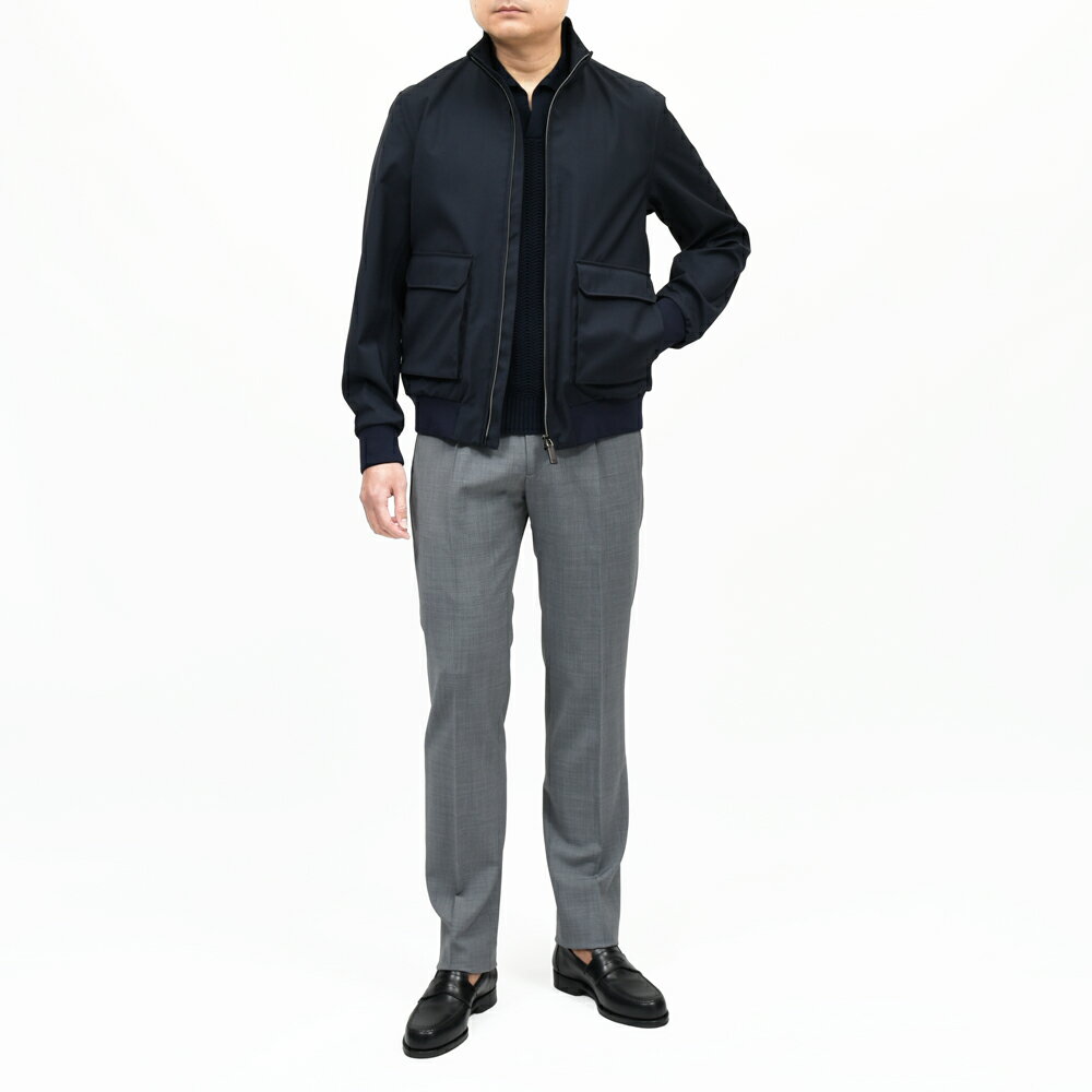 少しミリタリー感のあるスタンドカラーのブルゾンですが、粗野な雰囲気は全くありません、やはり生地のクオリティの高さが見た目の良さにストレートに現れています。