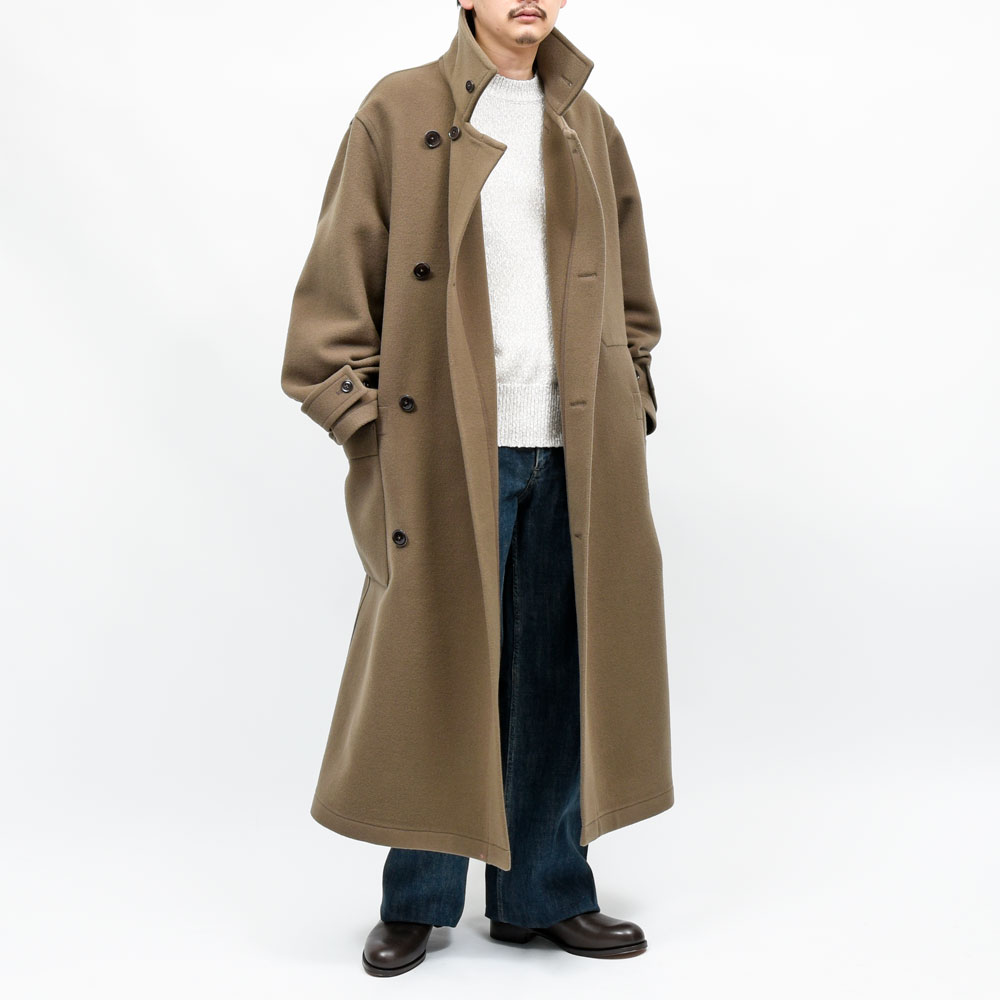 しっかりと厚みがありつつしなやかさも兼ね備えたダブルウールを採用、生地分量的にもかなり用尺を使っていますが、実際に羽織ってみるとそこまで重量感はないのもポイントです。