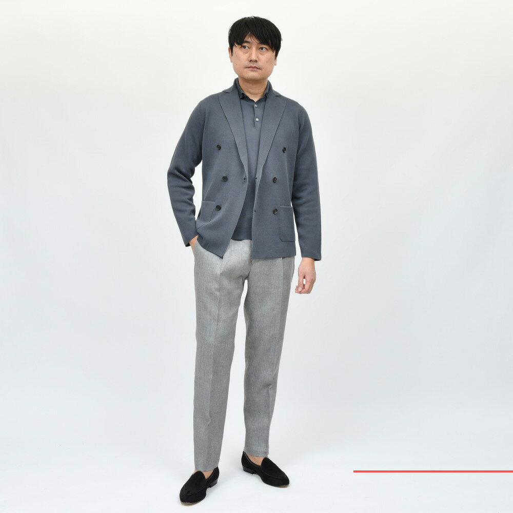 FILIPPO DE LAURENTIISはニット仕立てがベースなのでリラックステイストがあり、カジュアルビジネススタイルからオフシーンのスマートカジュアルまで幅広くカバー可能です。