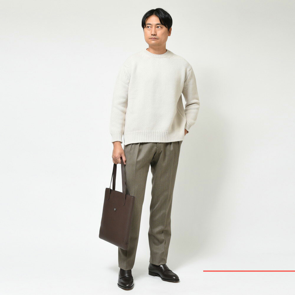 他のブランドのカシミアと何が違うんだろう?と考えてしまう事必至のクオリティでして、タッチの柔らかさ、素朴な中に感じさせるラグジュアリーさとリッチ感があり、またリアルにコーディネートできる汎用性の高さも持ち合わせるなど、全てにおいて素晴らしい仕上がりになっています。
