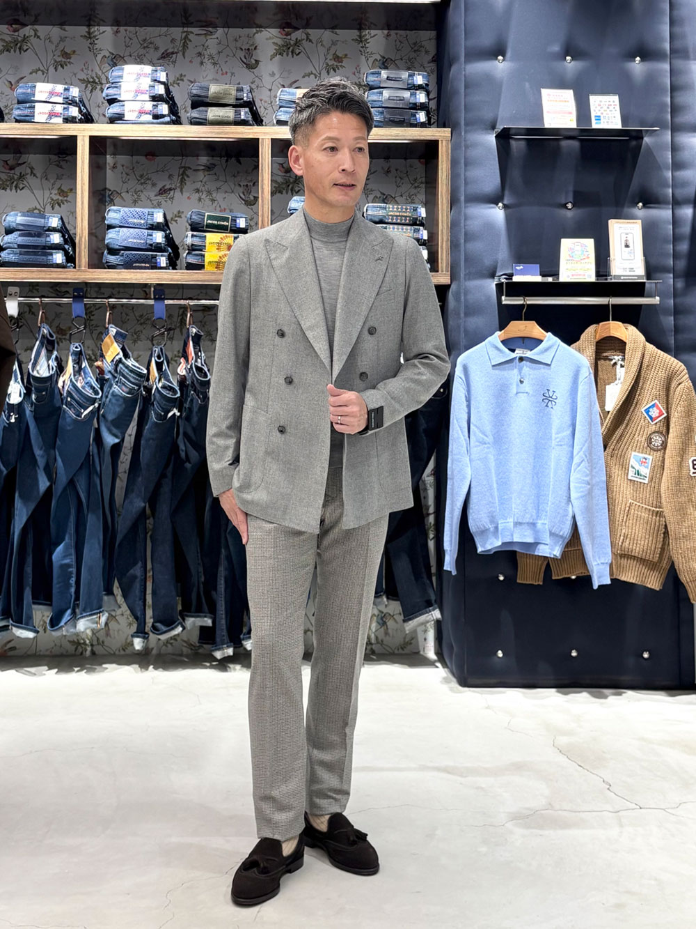ウールをベースにシルクを20%、カシミアを10%ミックスし、艶やかさととろみ、しなやかさのグレードをアップしたナイスクオリティの一着です。
