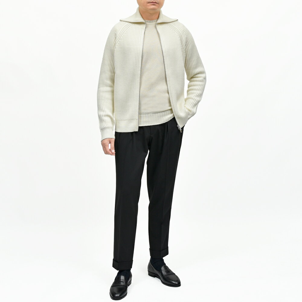 ZANONE(ザノーネ)のジップカーディガン、ドライバーズニット的なイメージでしょうか、しっかりと立体的に編み上げられたリブの畔と、軽やかに着られるライトウェイト感が実にイタリアらしい仕上がりです。