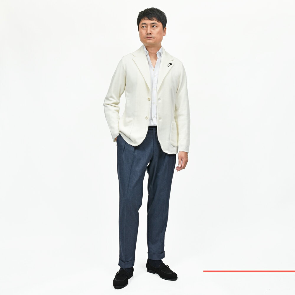 LARDINI(ラルディーニ)のニットジャケットはビジネスカジュアルスタイルを変えたと言っても過言ではない訳でして、リラックスすることが許されたビジネスシーンから会食まで使え、且つ休日の上品なスタイルまでカバーすることが出来る一着がこちらになります。