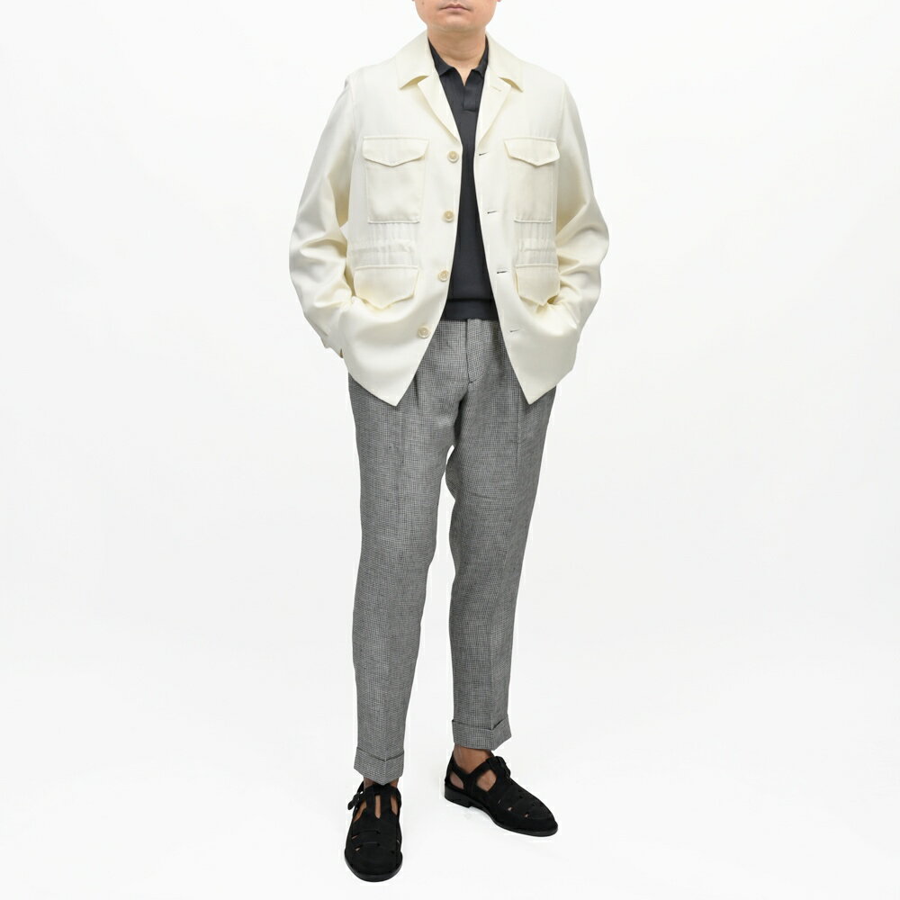 LARDINI(ラルディーニ)のフィールドジャケットNOSHナッシュはミリタリー、コロニアル調の雰囲気が魅力ですが、サルトのテクニックが駆使されていると感じられるクリーンさとエレガンスがあります。