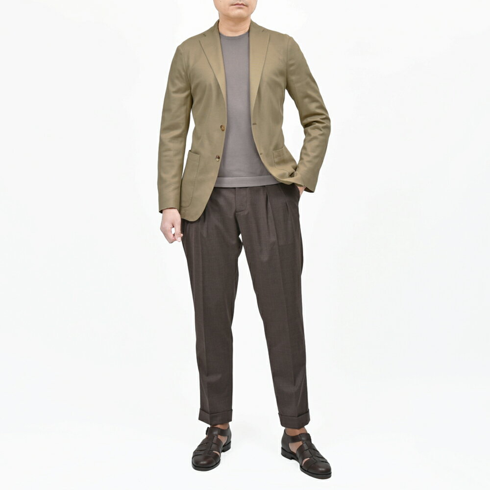 『「軽・楽・美」が手に入るナイスジャケットです。』 BOGLIOLI(ボリオリ)のライト&コンフォートモデルとして提案されている“EMPTYエンプティ”、立ち位置やプライスこそエントリーですが、仕上がりの美しさは間違いなく一線級ということで、同ブランドの定番モデルとしてオーダーしています。 仕上りは“アンコンのライトジャケット”という感じの一着で、言うならばシャツジャケットに近いイメージ。 胸ポケット無し、袖も筒袖になり、より軽やかに、ライトに着て頂けるモデルになっています。 こちらはコットンジャージ生地を用いたモデル。 ハニカム調の組織ということから通気性に優れ、伸縮方向が360度になることで高い快適性能を誇ります。 (画像のスタッフは182cm、76kgでLサイズを着用しています。) ・モデル:EMPTY エンプティ DOVERをベースにしたシルエットであり、副資材を用いずに仕立てるアンコンストラクテッドモデル ・ファブリック:ホップサックジャージ コットン100% 245g/m ・伸縮性があり、型崩れに強いジャージ素材 ・ドライタッチ・通気性に優れる ・フロント2ボタン・腰パッチポケット・胸ポケット無し・内ポケット胸無し、右腰のみ一か所 ・ラペル巾:8.5cm ・サイドベンツ ・袖:筒袖仕様(本切羽・開き見せなどの釦付け修理が不要) STAFF Voice 春夏シーズンはどのブランドも「軽さに由来する着心地の良さ」の追及に余念がないわけでして、日本のみならず世界的にも温暖化の影響が見て取れます。なにせ、本当にどこも暑いですからね・・・。 こちらはコットン素材のジャージ生地で、やや軽めのウェイトのファブリック。立体的な仕立てなので体にしっかりと添うように作られ、フィット感が良く型崩れの心配がない素晴らしいフィニッシュです。 コットン100%ですとどうしても厚みが出やすいんですが、こちらはとても上手く作られていると思います。 スタッフ 西出 重量的な面での軽さは正義ですが、見た目の面でも軽すぎるとちょっとな、、、と思ってしまいますよね。BOGLIOLIのジャケットは着心地は軽く、見栄えはキリッとしていますのでそのあたりの心配はいらないかと思います。 オンオフ問わず使いたくなるような汎用性の高い上質なジャケットになっています。 スタッフ 泉 コーディネートサンプル ジャケット:BOGLIOLI ニット:ZANONE パンツ:BERWICH 靴:F.LLI Giacometti 鞄:il micio アウター:Hevo ジャケット:BOGLIOLI ニット:ZANONE パンツ:BERWICH 靴:F.LLI Giacometti 鞄:il micio コーディネートサンプルをもっと見る ※別窓でひらきます サイズ 着丈 肩幅 袖丈 胸囲 ウエスト XXS 70 42 60.5 90 82 XS 71 43 61.5 94 86 S 72 44 62.5 98 90 M 73 45 63.5 102 94 L 74 46 64.5 106 98 ※単位はcmです。 詳しいサイズはコチラ 商品番号 17061000039 展開レーベル guji モデル EMPTY 0G0166/SB5024 販売価格 ¥110,000 + tax シーズン 春 / 夏 素材 表地:コットン100% 袖裏部:レーヨン63% ポリエステル37% 生産国 イタリア 付属品 ネーム入りハンガー 【修理希望のお客様へ】 修理希望のお客様はコチラのページより、 希望の修理方法を一緒にカートに入れてご注文ください。 ※修理が必要な場合のみご注文ください。ご注文が無ければ未修理にて発送致します。 ブランド BOGLIOLI/ボリオリ ボリオリは、伝統的なサルトリアーレの手法を継承し、常に革新的な技術と時代を反映させた新しい発想で進化し続けているブランドです。 このブランドの商品をもっとみる