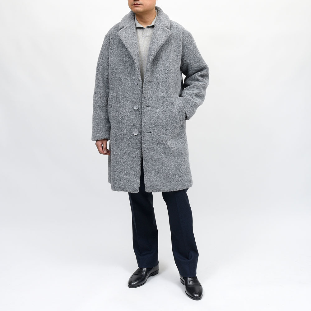 HERNO(ヘルノ)の全面エコファーなチェスターコート、程良くボア的といいますか、可愛さと恰好良さを巧みにミックスしたバランスが秀逸です。