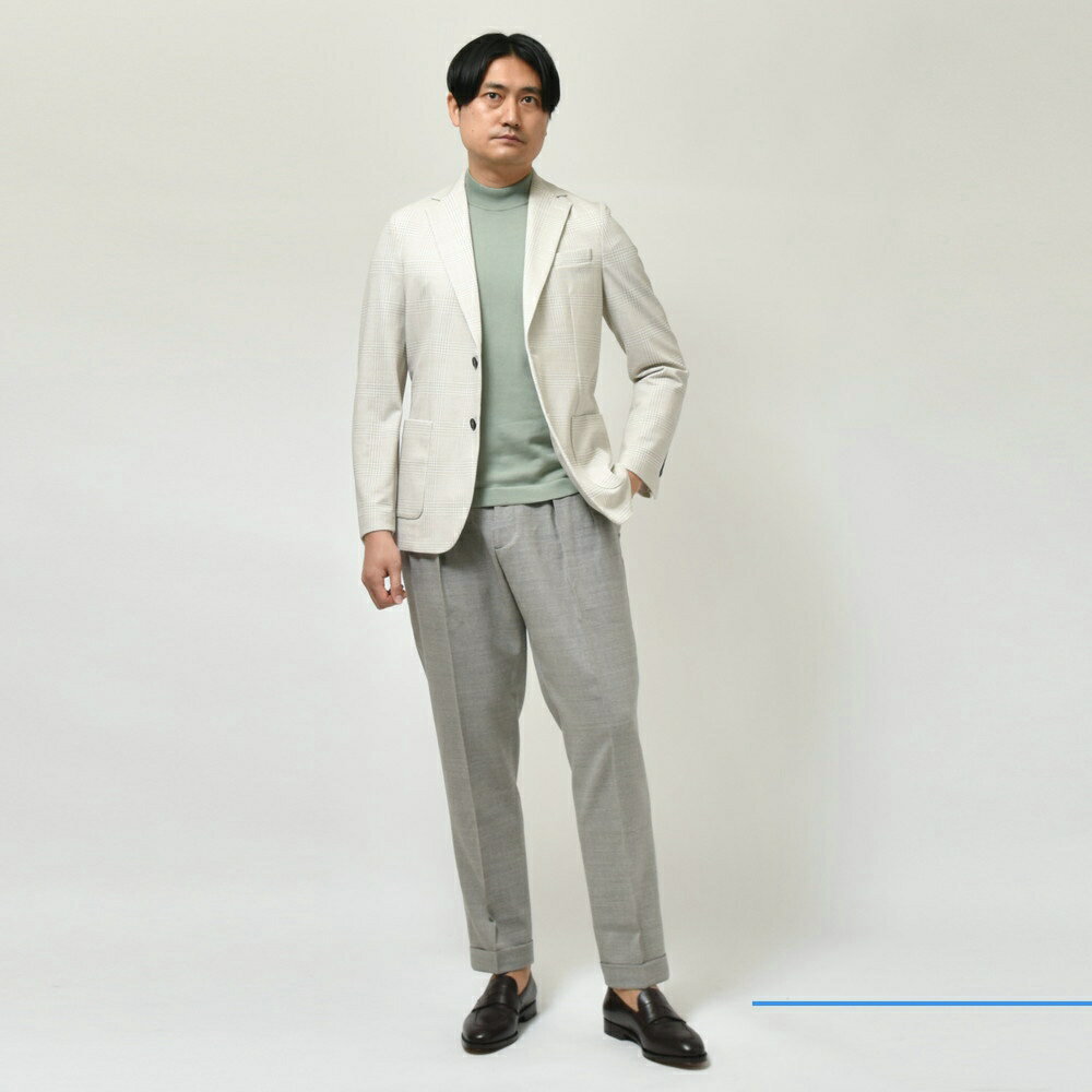 単に着心地が良いだけでなく、シルエットもサルト仕立てならでは。色使いのセンスも良く上品であり、大人のイージージャケットとして文句なしの仕上がりになっていると思います。