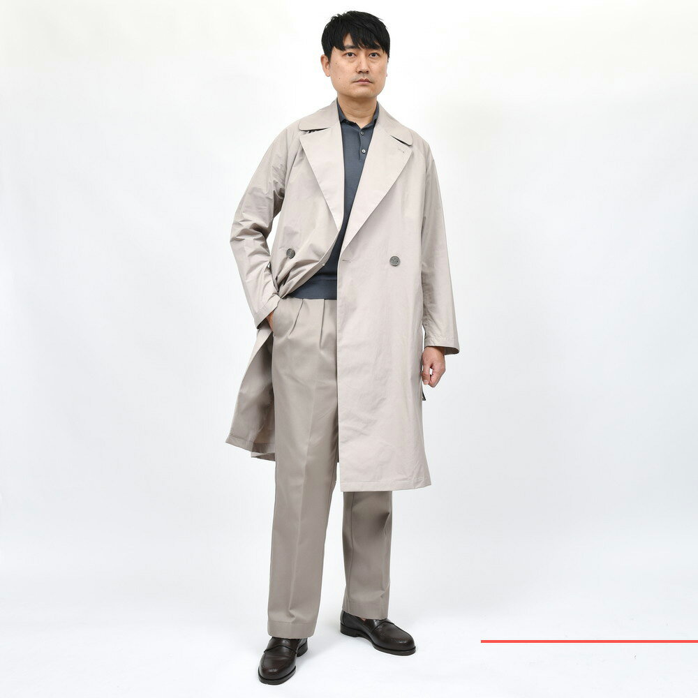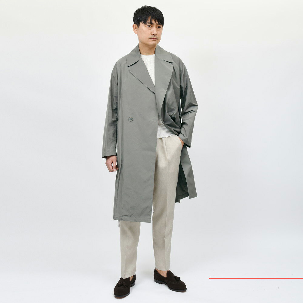 控えめな光沢感と撥水性を持ち合わせており、シャカシャカし過ぎない落ち着き感が素晴らしい大人のためのコートに仕上がっています。