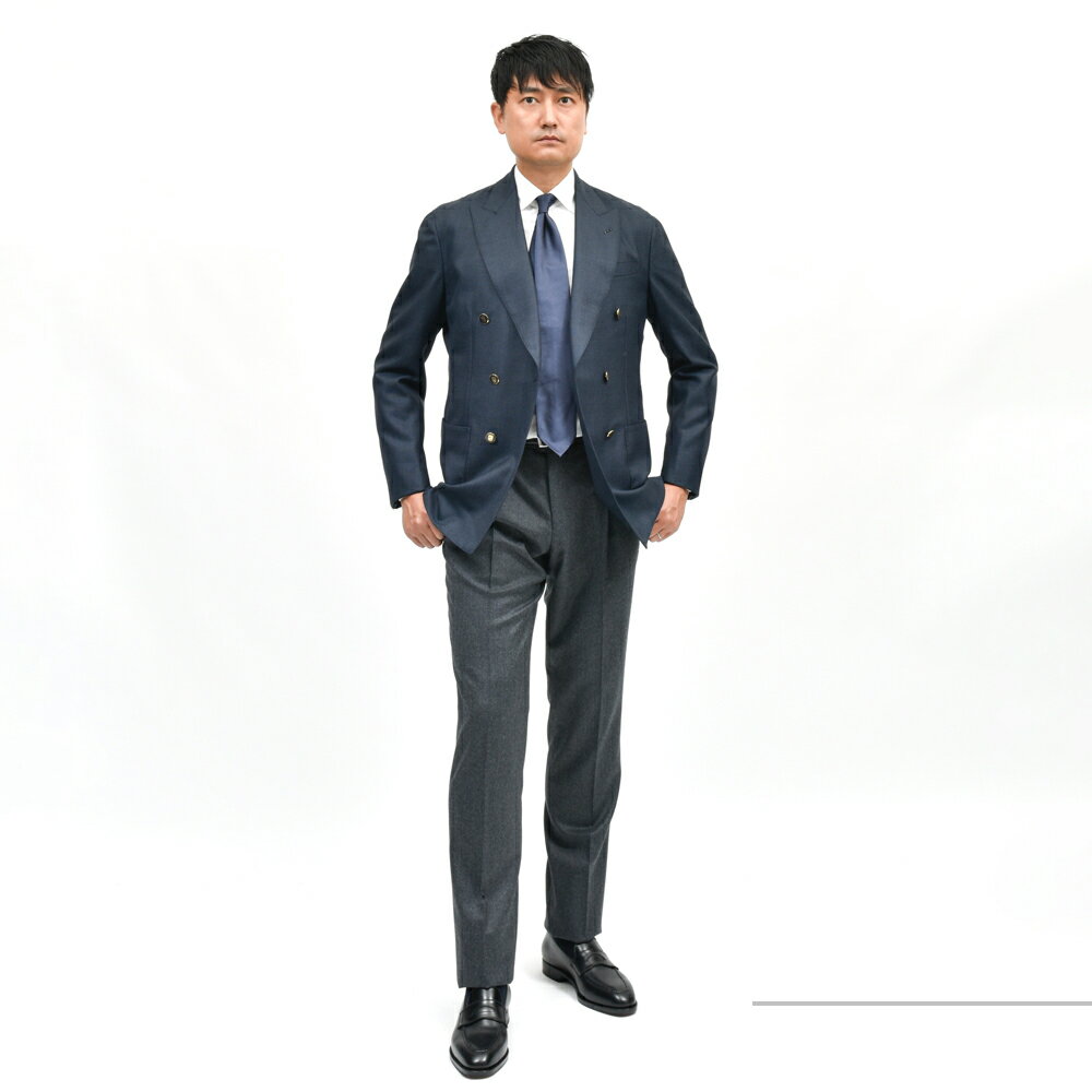 ネイビーブレザーはクラシックの王道中の王道ですが、GIANFRANCO BOMMEZZADRIのネイビーブレザーはドレス感とカジュアル感のバランスが絶妙で、スタッフも愛用者が多いジャケットです。