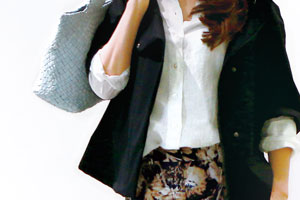 BLOUSE:DOROTHEE SCHUMACHER ¥ 58,320 / SKIRT:DOROTHEE SCHUMACHER ¥ 72,360 / BAG:ZANELLATO ¥ 95,040 / SHOES:PELLICO ¥ 49,680