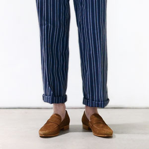 COAT:Sealup ¥ 91,800 / KNIT:Fablizio Del Carlo ¥ 31,320 / CUT&SEWN:Drumohr ¥ 18,360 / PANTS:J.W.BRINE ¥ 31,320 / BELT:Anderson's ¥ 19,440 / SHOES:Crockett&Jones ¥ 74,520
