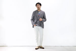 JACKET:GABRIELE PASINI ¥ 135,000 / GILET:GABRIELE PASINI ¥ 56,160 / CUT&SEWN:MONSIEUR LACENAIRE ¥ 11,880 / PANTS:SIVIGLIA ¥ 37,800 / SHOES:FERRANTE ¥ 52,920