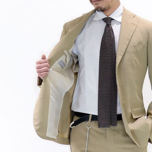 SUIT:RING JACKET ¥ 108,000 / SHIRT:Maria Santangelo ¥ 29,160 / TIE:GIERRE ¥ 10,800 / SHOES:F.LLI Giacometti ¥ 102,600 / BELT:AMBOISE ¥ 17,280 / WALLETCHAIN:TATEOSSIAN ¥ 102,600