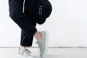 SUIT:THE GIGI ¥ 172,800 / CUT&SEWN:three dots ¥ 16,200 / SHOES:Amb ¥ 23,760 / CAP:Larose ¥ 21,168