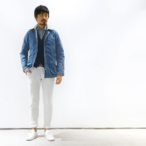 BLOUSON:Barbour ¥ 46,440 / GILET:Bevilacqua ¥ 32,400 / SHIRT:Bevilacqua ¥ 25,920 / PANTS:C+ ¥ 24,840 / BELT:Anderson's ¥ 16,200 / SHOES:PHILIPPE MODEL ¥ 56,160